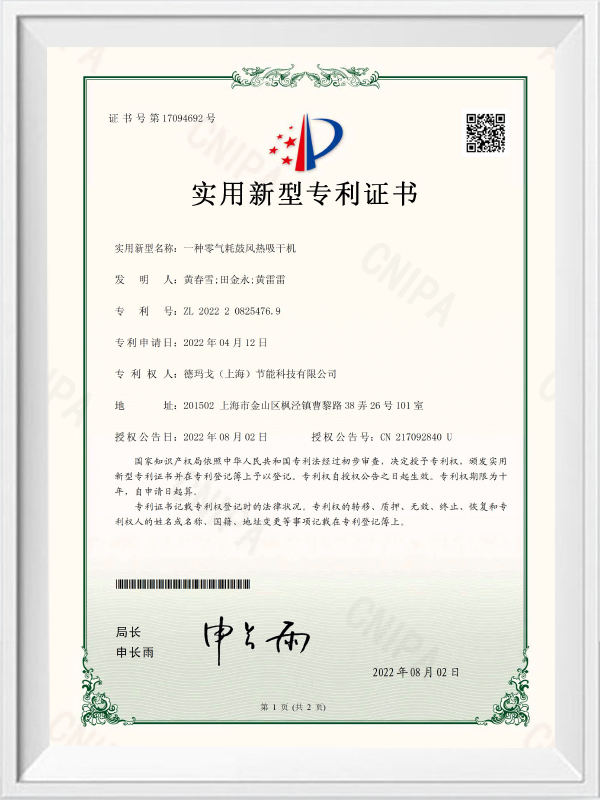 خشک کن گرمای مصرف هوا صفر مصرف - گواهی ثبت اختراع مدل ابزار