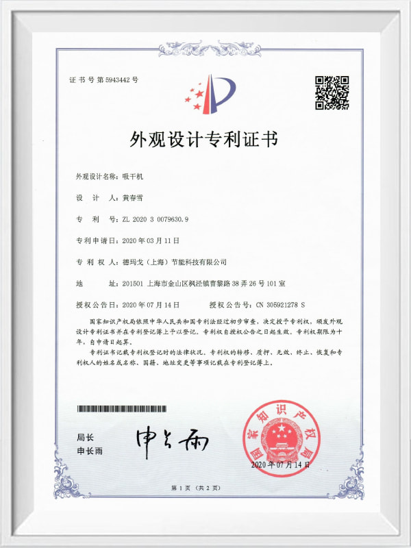 یک استیل ضد زنگ سه در یک صفحه تغییر در حال تغییر گواهی ثبت اختراع مدل خشک کن