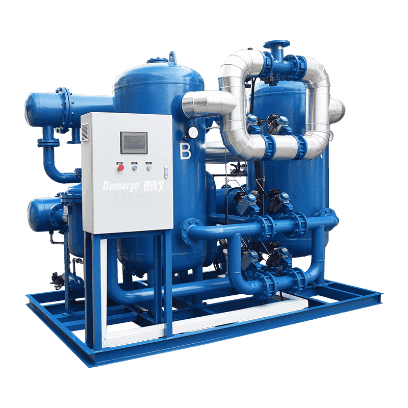 خشک کن گرمای زباله از گرمای زباله کمپرسور هوای بدون روغن برای گرم کردن و بازسازی جاذب استفاده می کند. این باعث می شود از گرمای زباله در سیستم هوای فشرده استفاده کامل شود. بدون استفاده از دستگاه گرمایش ، می توان اثر خشک کن گرمایش را نیز بدست آورد که ویژگی های صرفه جویی در مصرف انرژی و راندمان بالا را به طور کامل نشان می دهد. نقطه شبنم گاز تمام شده می تواند به -40 برسد. از کنترلر PLC خود توسعه یافته استفاده می شود ، که از میکرو رایانه تک تراشه پایدار و قابل اعتماد تر است. شیر کنترل از یک دریچه پروانه ای با کیفیت بالا استفاده می کند تا بیش از 1 میلیون بار از تعویض بدون مشکل اطمینان حاصل شود. طراحی پیشرفته Diverter به هوای فشرده شده اجازه می دهد تا به طور مساوی با جاذب تماس بگیرد و پدیده کانال را کاملاً از بین ببرد .